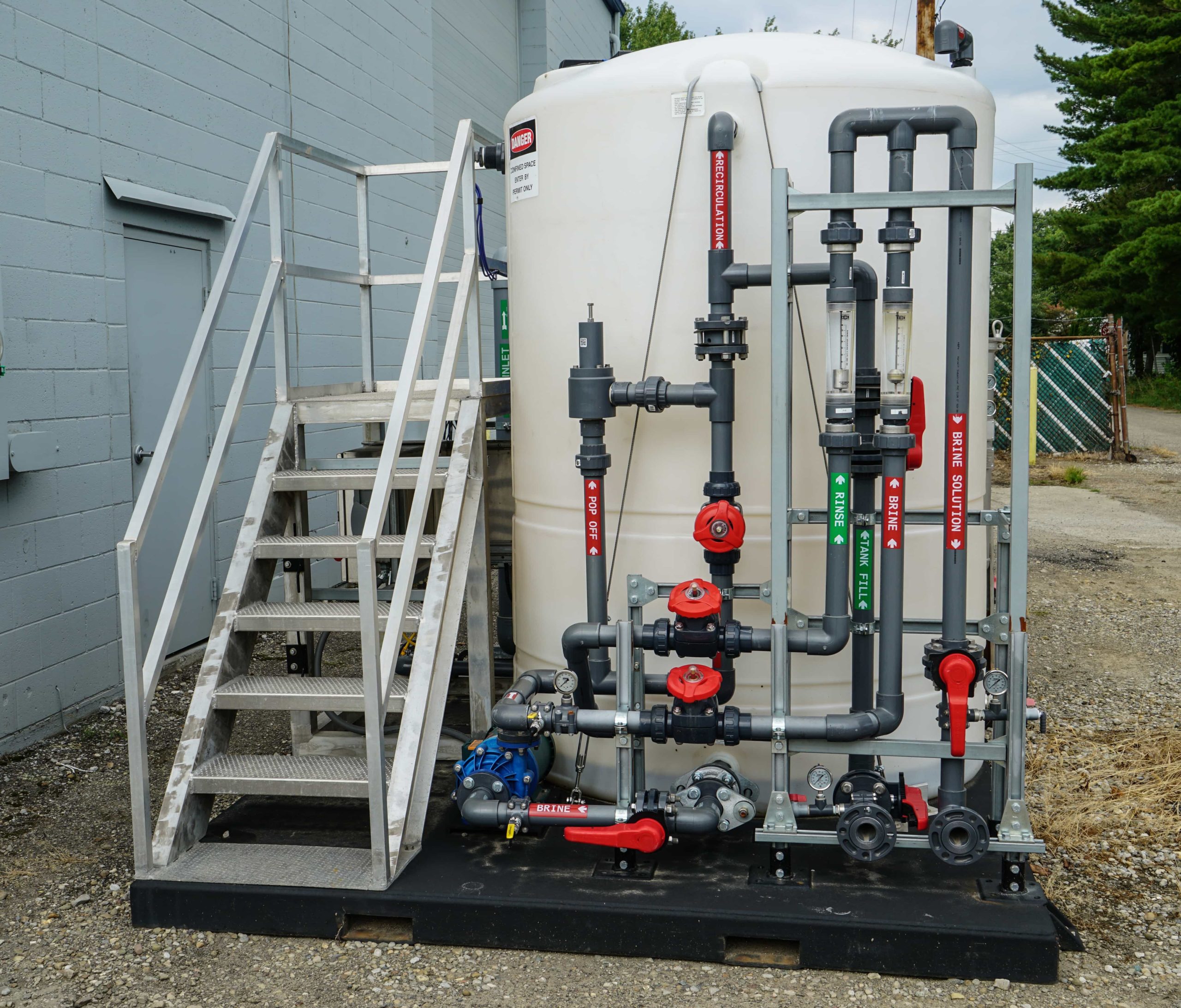 MPW的特色是该行业的主要移动盐水Skid,可为树脂再生提供饱和的盐水。自动移动盐水滑雪是一个辅助单元,为树脂再生提供稀释的盐水。增强泵循环盐水,并将出口线加压到软化系统。稀释是通过板载旋转仪表控制的,可以通过隔膜阀进行调节。水平和阀指标提高了可靠性,而盐水的设计则有助于快速简便的设置。此外,可以利用自动化的辅助填充线来支持使用板载储罐级别控制器使用稀释的盐水。