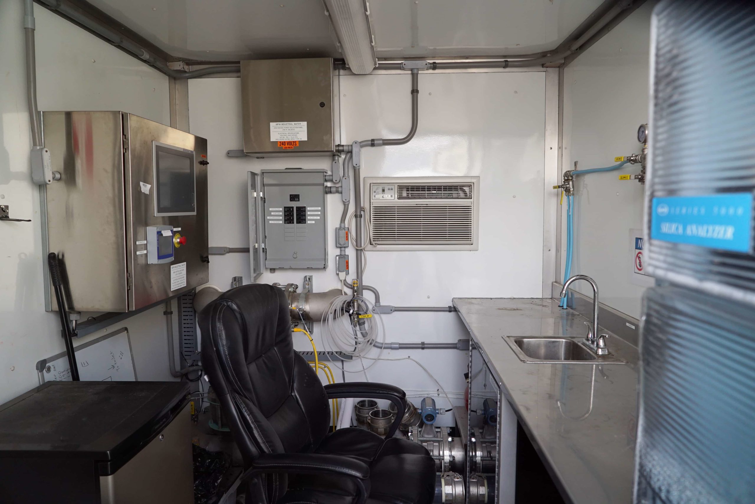 MPW的移动指挥中心允许连续的现场监控提供方便,定制的解决方案。移动指挥中心提供了对废水规格的完全自动化,连续的分析。手动样本可以取自易于获取的实验室水龙头。该实验室是由气候控制的,包括人员办公室。许多选项可根据需要完全自定义。