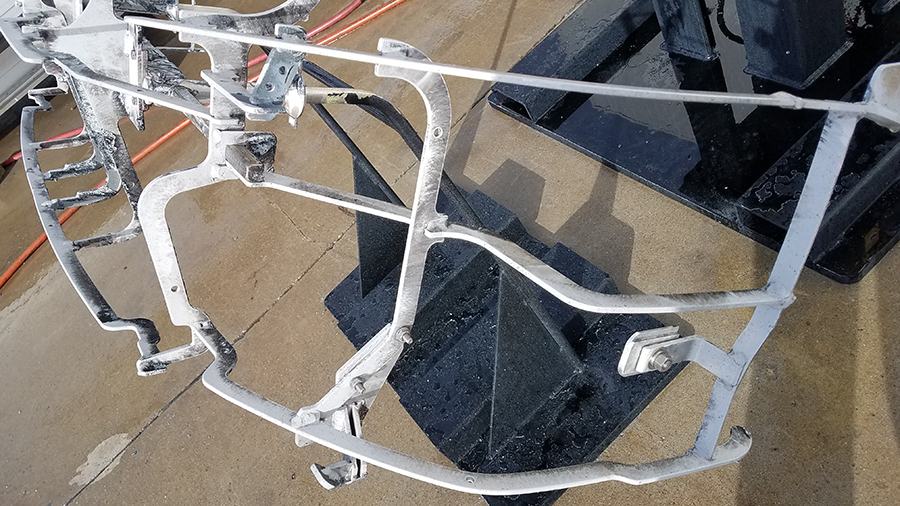 斯潘格勒说,MPW公司定制了这款机器人来清洁SUV前保险杠的固定装置。这些固定装置通过工厂的油漆线,然后进入烘干油漆的烤箱。当油漆在固定装置上堆积时,可能会在汽车组装过程中产生错误,所以固定装置必须以40000 psi的压力被水喷射,然后才能送回生产线。